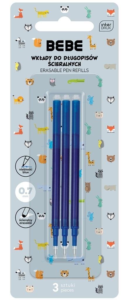 Zestaw 3 szt. wkładów do długopisów ścieralnych profilowanych BB. Niebieski kolor. przeczytaj całość