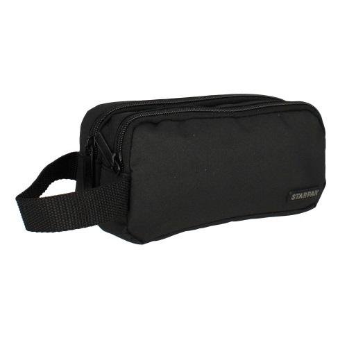 Odporny materiał, podszewka, która chroni przed zabrudzeniem i jest łatwa w czyszczeniu, mocny zamek błyskawiczny, bardzo pojemny. Piórnik w kształcie saszetki z kolekcji STARPAK z 2 zamkami błyskawicznymi. Posiada uchwyt do trzymania go w ręce. Piórnik pomieści niezbędne artykuły piśmiennicze i nie zajmie dużo miejsca w plecaku. Piórnik występuje w czarnym kolorze.