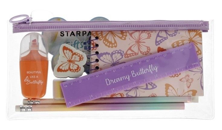 Zalety produktu: Zestaw szkolny to niezbędnik na każdym biurku . Praktyczne i podstawowe przybory jakie muszą się znaleźć na biurku każdego dziecka, pastelowe kolory jeszcze bardziej zachęcą Twoją pociechę do korzystania z nich. Zawartość zestawu: piórnik przezroczysty zapinany na zamek...