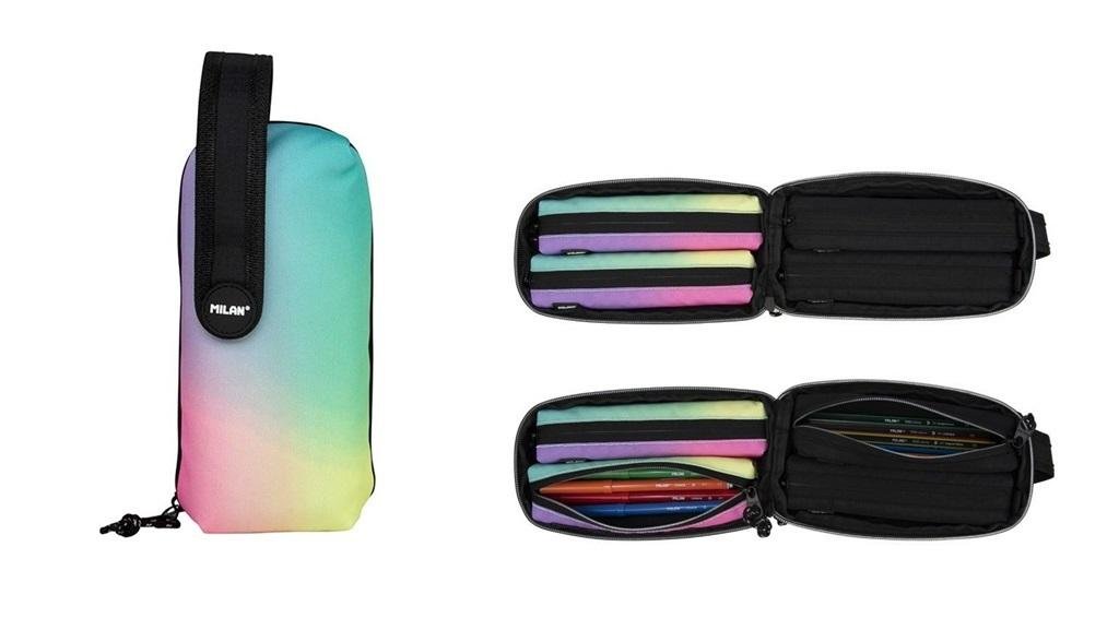 Doskonały duży piórnik Milan z bogatym wyposażeniem tej samej marki. Pastelowy piórnik z motywem ombre z kolekcji Sunset. Multipiórnik Milan to doskonale i praktyczne rozwiązanie. W dużej saszetce znajdują się 4 mniejsze piórniki. Możesz używać całego zestawu lub jego części. Zestaw zawiera 5...