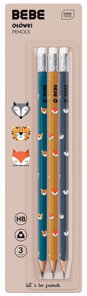 Zestaw 3 ołówków HB. Trójkątny profil. Matowe wykończenie Zakończone białą gumką. przeczytaj całość