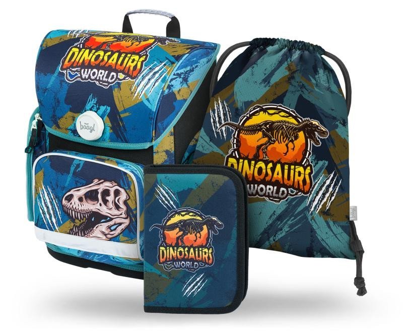 BAAGL Set 3 ks Ergo - Dinosaurs World (aktovka, penál, sáček)