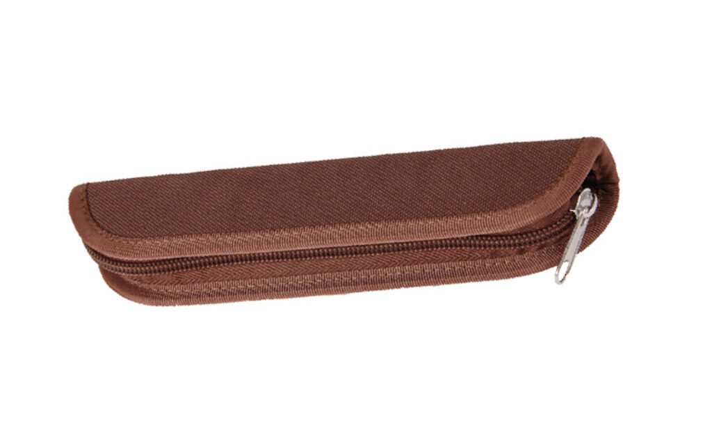 Pouzdro na tužky z příjemného polyesterového materiálu, hnědá, 2 gumičky, rozměr: 190 x 37 x 25mm przeczytaj całość