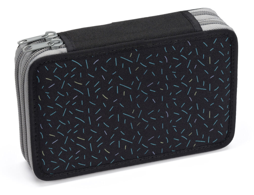 Dvoupatrové penály obsahují v prvním patře 8 gumiček na pastelky, 2 gumičky na tužky a jednu větší na pero, dále gumičky na ořezávátko a gumu a kapsičku na drobnosti, uzavíratelnou na patent. Ve druhém patře penálu je umístěna průhledná kapsička na rozvrh a tajné dokumenty a 9 pevných gumiček na... przeczytaj całość