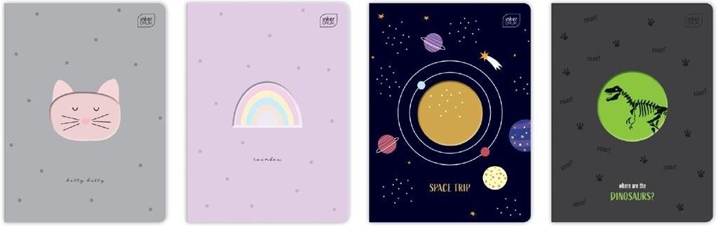 Opakowanie zbiorcze 20 sztuk.Format: A5. Liczba kartek: 16. Zadruk w kratkę. Zaokrąglone rogi. Okładka wyróżnia się modnym wycięciem, które stanowi zarys graficzny, a wraz z kolorową kartką umieszczoną pod okładką tworzy estetyczny i kolorowy obrazek. przeczytaj całość