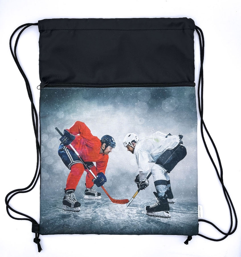 Worek zdobi motyw hokeja na lodzie, który spodoba się wszystkim fanom tej dyscypliny i nada im stylowy, sportowy wygląd. W zestawie znajduje się także praktyczna kieszonka na zamek, odpowiednia na mniejsze przedmioty, które chcesz mieć pod ręką.