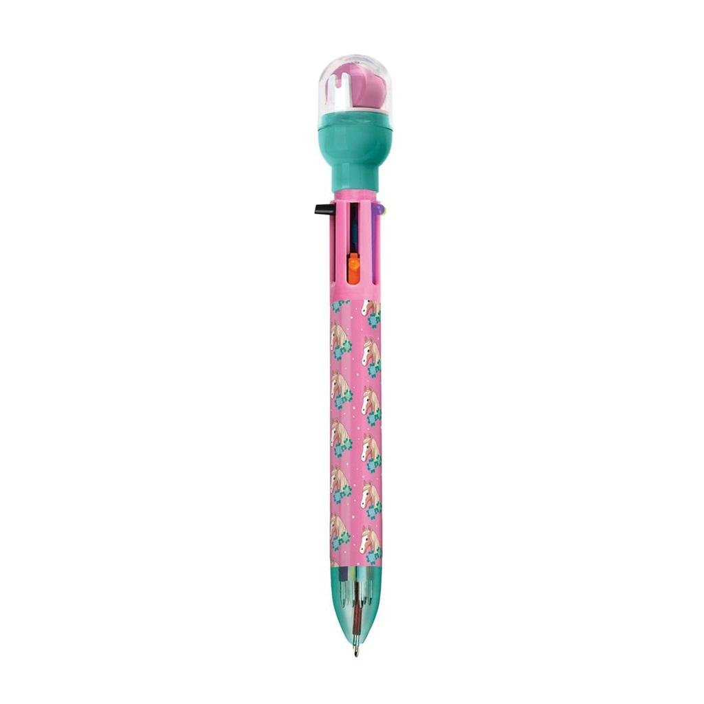 Wielokolorowy długopis ze stempelkami - Konie Pięknie wykonany wielokolorowy długopis ze stempelkami, ozdobiony grafikami koni. Zamiast pojedynczych długopisów w kolorach czarnym, niebieskim, fioletowym, czerwonym, pomarańczowym i zielonym, potrzebujesz tylko jednego, modnego długopisu -...