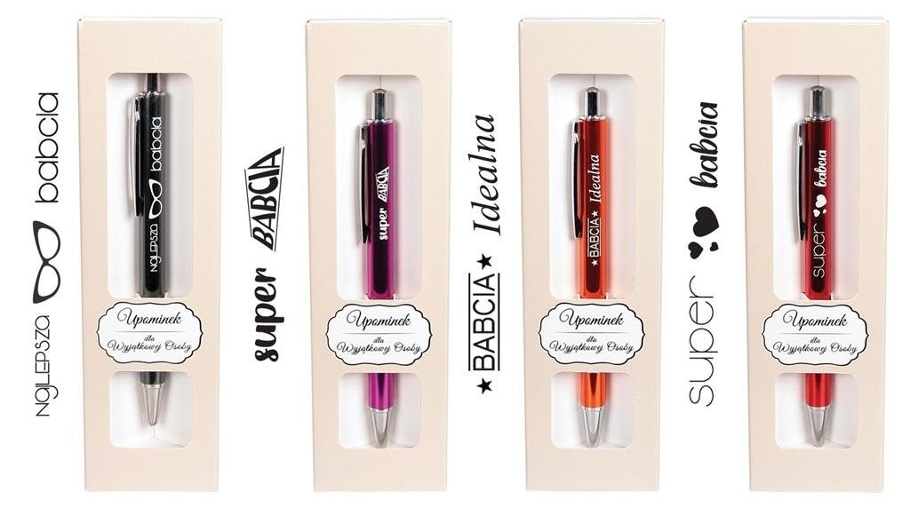 Miks wzorów, towar wysyłany losowo. Cena za sztukę.Metalowy, automatyczny długopis CARLOS z nadrukiem jako prezent na różne okazje dla BABCI. Zapakowany w prezentowe etui. Występuje w miksie kolorystycznym z kilkoma wzorami nadruku. Wkład niebieski wymienny. przeczytaj całość