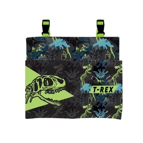 Szkolny organizer na ławkę z motywem T-rexa. Do głównej kieszeni zmieszczą się zeszyty i podręczniki do formatu A4. Do dwóch przednich kieszeni (22 x 18 cm) wygodnie zmieszczą się pozostałe przybory szkolne. Zapięcie na klamrę. przeczytaj całość