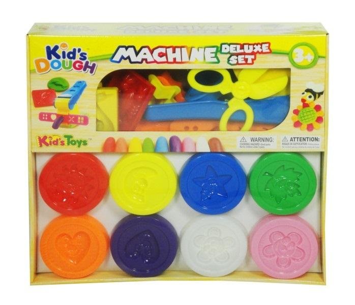 Zestaw masy plastycznej. W skład zestawu wchodzi 8 kubeczków z masą (8 różnych kolorów). Poza tym w zestawie znajdują się także foremki, wyciskarka, nożyczki, nożyki. Zestaw pozwoli ćwiczyć dzieciom ich małe zwinne paluszki, a także będzie rozwijał u dzieci wyobraźnię i kreatywność. Po...