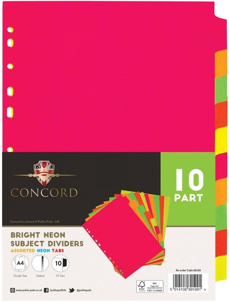 Przekładki do segregatora A4 10 blocz. neon PUKKA