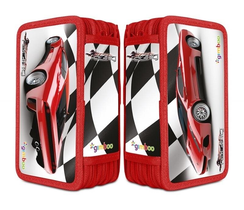 piórnik szkolny z kolekcji GIMBOO 2024 posiada 3 komory zestaw zawiera wyposażenie (linijkę, ekierkę, 3 szt. długopisów, ołówek, gumkę, temperówkę, 16 szt. flamastrów, 16 szt. kredek) przeczytaj całość