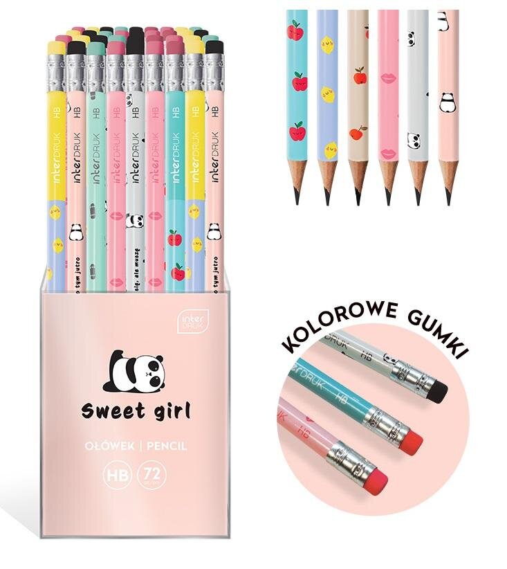 Opakowanei zbiorcze 72szt.Ołówek HB. Okrągły profil. Zakończony kolorową gumką. Do wyboru 6 słodkich wzorów. 72 szt. w kubiku. Te same motywy znajdziesz również na naszych ołówkach, gumkach i akcesoriach papierniczych - stwórz swój niepowtarzalny zestaw! przeczytaj całość