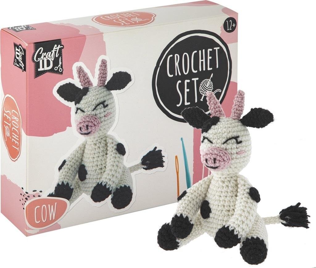 Zestaw do szydełkowania Krowa, 14x8x16 cm, zestaw zawiera: nić białą, różową oraz czarną + plastikowe szydełko. przeczytaj całość