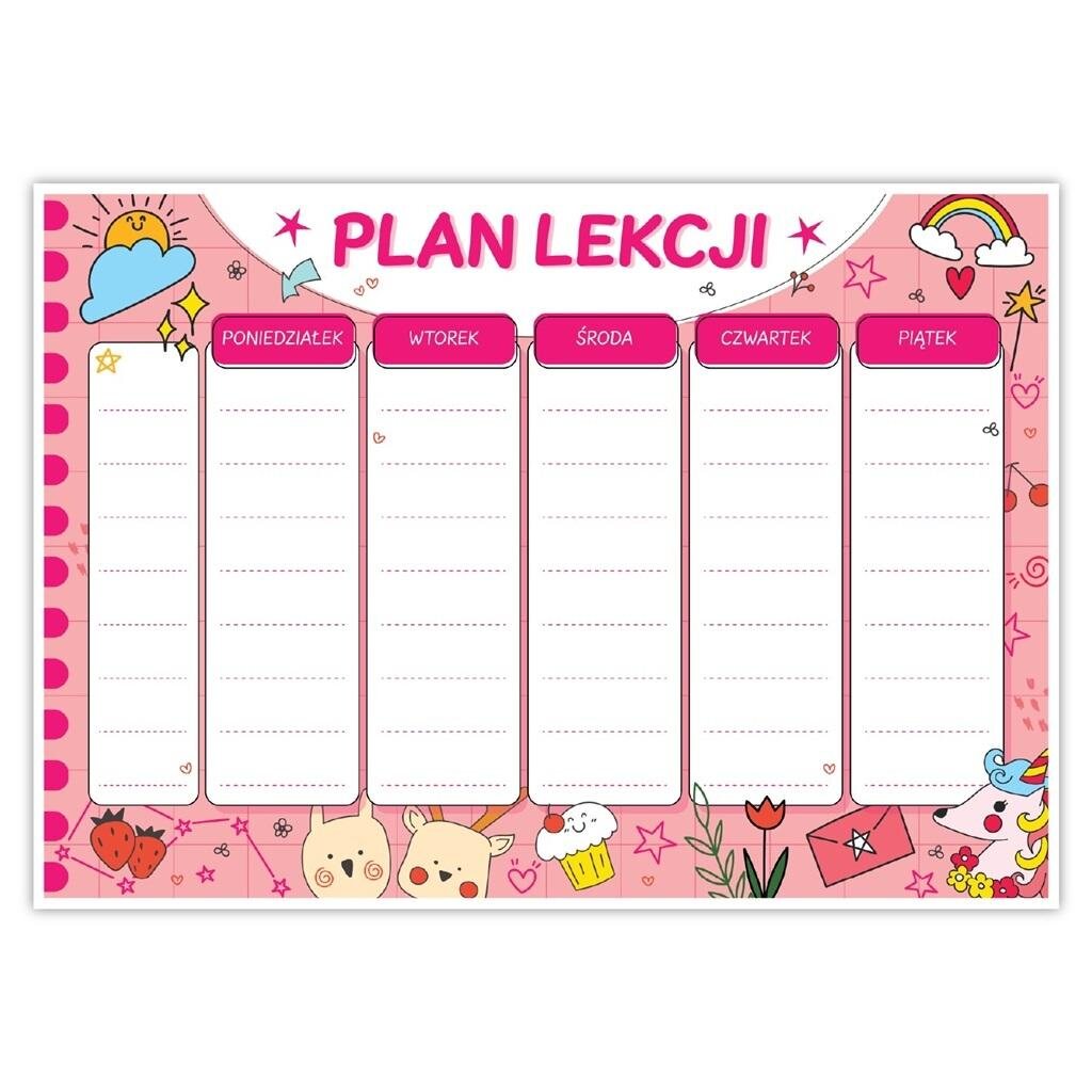 MAGNETYCZNY PLAN LEKCJI - ZESZYT - RÓŻ (A4) - WIELOKROTNEGO UŻYTKUPlan lekcji idealnie sprawdzi się na początek roku szkolnego - do organizacji zajęć oraz zapamiętania szkolnych lekcji.Kolorowy szkolny motyw świetnie nadaje się aby umilić dziecku planowanie oraz przystąpienie do nowego roku...