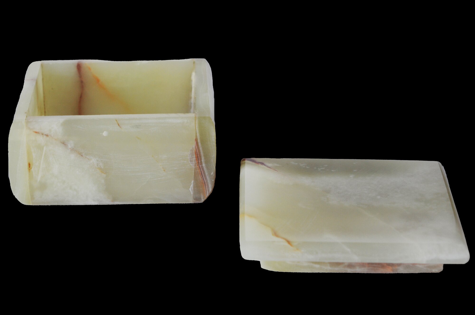 Jedinečná designová dekorace, která díky svému lesku, barevné kresbě a průsvitnosti při prosvícení, navozuje pocit luxusu. Polodrahokam Onyx má také mnoho pozitivních účinků na lidské tělesné i psychické zdraví.Používání:Tato krabička je ideální pro uložení šperků.Tento produkt lze použít k...
