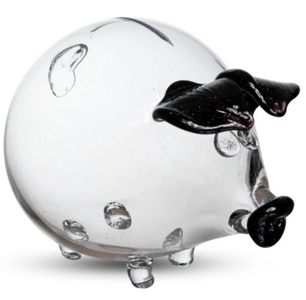 DuraHome Pokladnička prasátko, černé uši, sklo 16cm