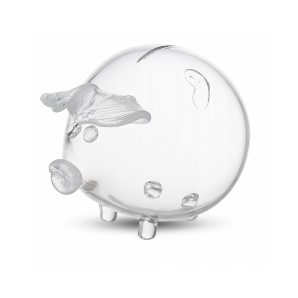 Pokladnička je vyrobena z odolného silného skla, což zaručuje pevnost a dlouhou životnost. Povrch působí elegantně a stylově. Díky absenci otvoru pro výběr zůstávají úspory opravdu v bezpečí – k penězům se dostanete až rozbitím prasátka. Je vhodná pro děti i dospělé, skvěle se hodí jako originální a vtipný dárek.