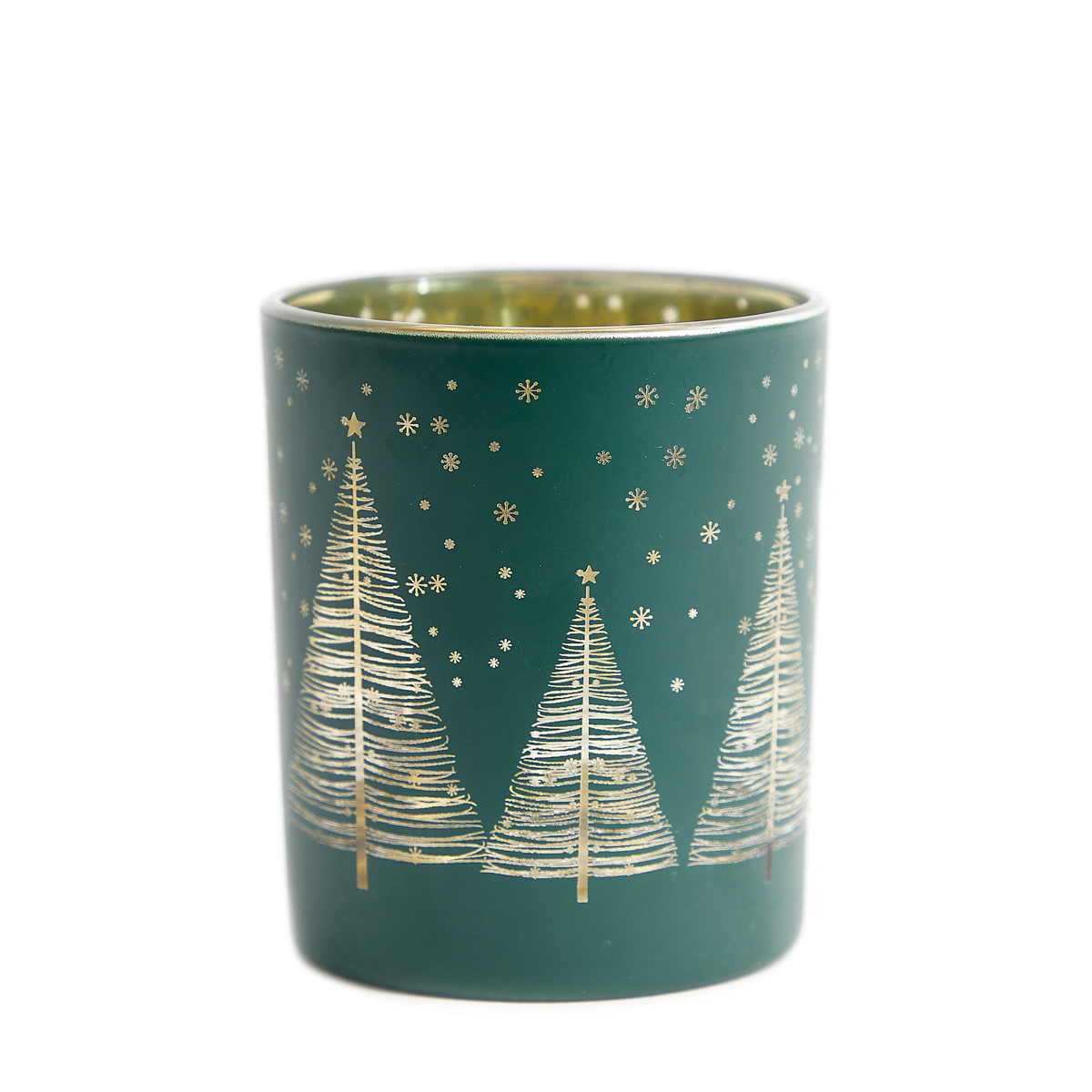 Vánoční lampička na svíčku | LANCY | zelená s vánočními stromky | 7x8 cm | 836584 Homla