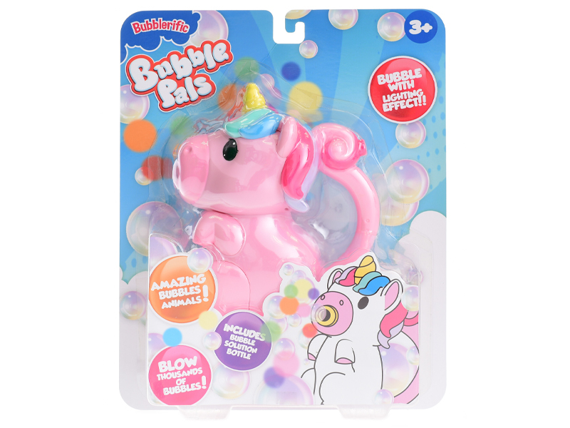 Bublifukovač jednorožec 20cm na baterie se světlem a s náplní 118ml na kartě