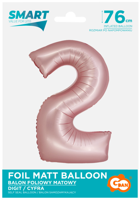 Balon foliowy Smart, Cyfra 2, j. różowa matowa, 76 cm, GoDan