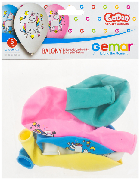 Balony Premium "Jednorożec - magiczna noc", nad. kolorowy, 12" / 5 szt., GoDan