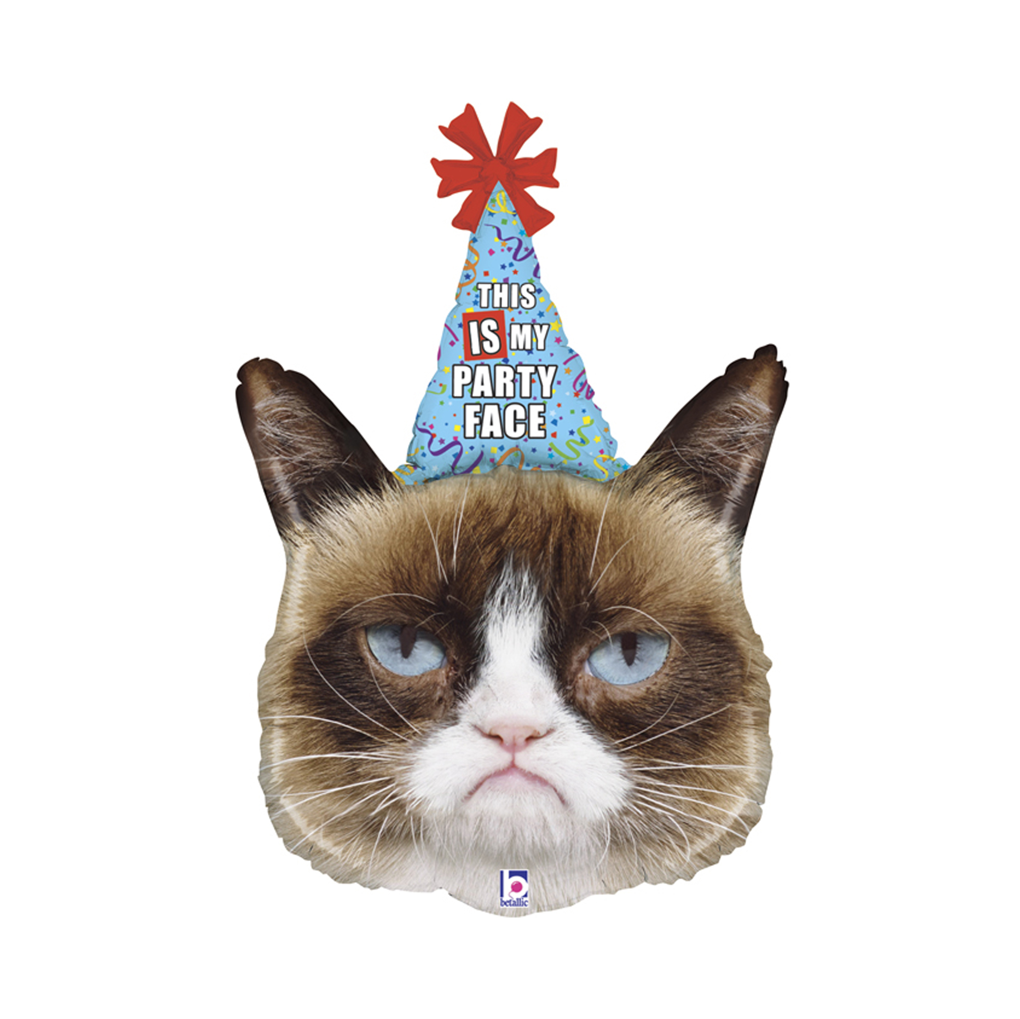 Fóliový balónek ve tvaru mrzuté kočičky s nápisem „This is my party face“ na čepičce je vtipnou dekorací na narozeninovou oslavu nebo párty. Velikost/rozměr: 29" - 74 cm Materiál: pevná fólie Balení obsahuje: 1 ks balónku Balónek je možné nafukovat vzduchem i heliem. przeczytaj całość