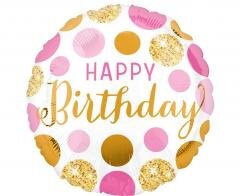 Balon foliowy Pink and gold Happy Birthday 46cm