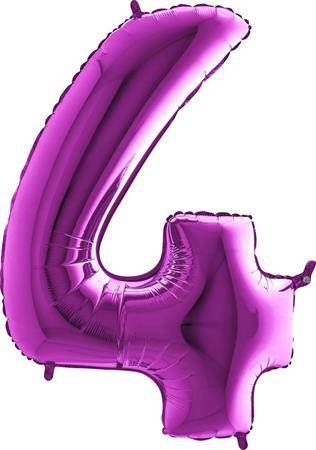 Fialový balónek číslo 4. Balónek je vyrobený z pevné fólie. przeczytaj całość