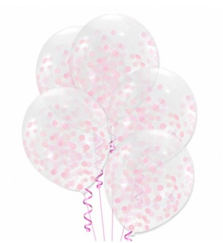 Průhledné balonky se světle růžovými konfetami, 30 cm - 5 ks