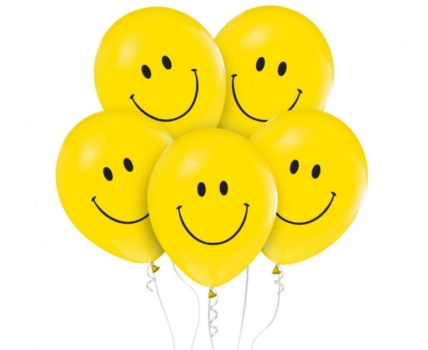 Lateksowe balony w żółtym kolorze z nadrukiem smajlika, które nadają się do nadmuchania zarówno helem, jak i klasycznie powietrzem, pasują na każde urodzinowe przyjęcie lub imprezę. Balon można nadmuchać powietrzem lub helem. Balon wykonany jest z materiałów nadających się do recyklingu i jest w 100% poddawany recyklingowi. Rozmiar: 30 cm. Opakowanie: 5 szt.