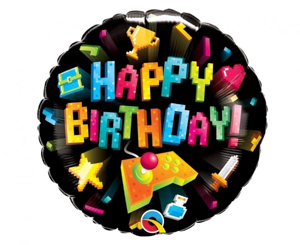 Foliový balonek v motivu retro her s nápisem Happy Birthday. Tento balónek je perfektní dekorační doplněk na oslavu narozenin nebo jako výzdoba party. Hodí se také jako malý dárek.