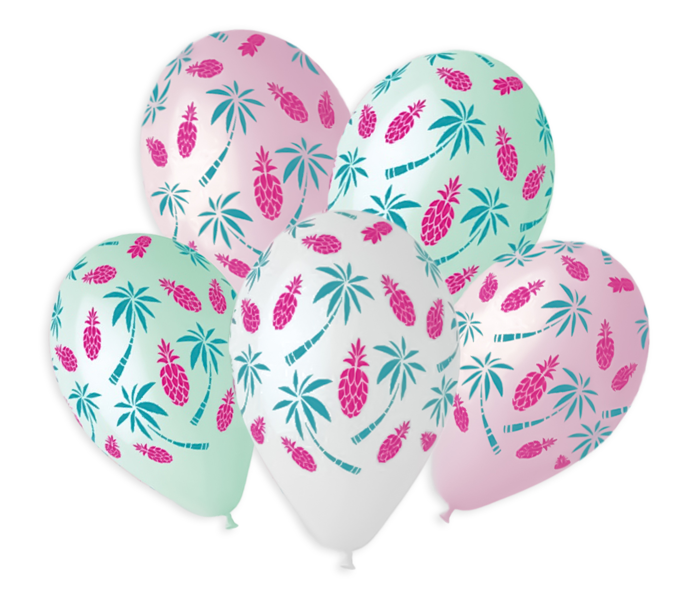 Balónky s potiskem 5ks OBYČ. Palmy a ananas