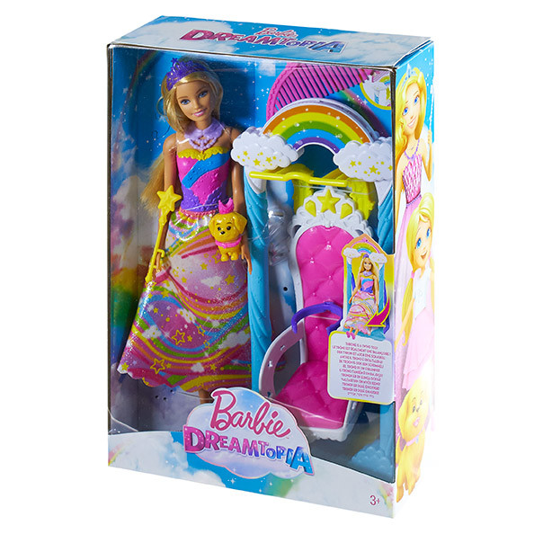 Panenka Barbie® může panovat svému Sladkému království z tohoto unikátního trůnu, který není jen obyčejným trůnem, ale skrývá i několik fantastických vychytávek. Jakmile si budeš chtít užít trochu zábavy a odpočinout si od panování, jednoduše použij trůn jako houpačku. Pestrobarevný trůn je...
