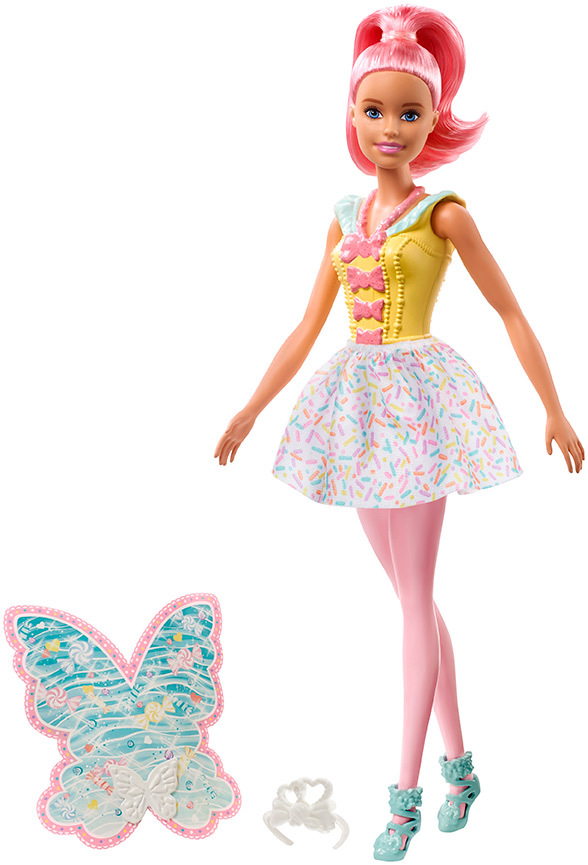 Poznej rozkošnou kouzelnou vílu pocházející ze Sladkého království v Dreamtopii. Tato Barbie® víla se pyšní překrásnými křídly, která jsou pokryta unikátními pestrobarevnými potisky a je oblečena do nádherného oblečku v zářivých barvách. Součástí oblečku je odnímatelná sukýnka, ladící střevíčky a...