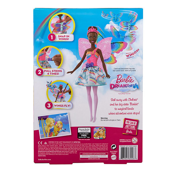 Vydej se vzhůru až do oblak s těmito nádhernými létajícími vílami Barbie® s křídly, protože když spolu se sestrami Barbie® a Chelsea™ vstoupíš do Dreamtopie, probudíš se ve světě, kde se sny stávají skutečností! Nejprve připni pestrobarevně zdobená motýlí křídla na záda panenky Barbie®. Poté...