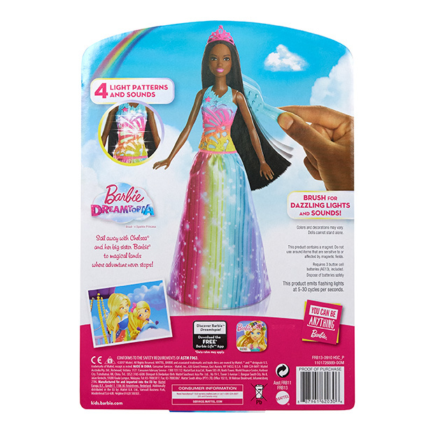 Užij si spoustu zábavy s touto princeznou Barbie® s magickými vlasy, protože když spolu se sestrami Barbie® a Chelsea™ vstoupíš do Dreamtopie, probudíš se ve světě, kde se sny stávají skutečností! Jakmile začneš česat princezniny neskutečně dlouhé vlasy pomocí přiloženého magnetického hřebenu,...