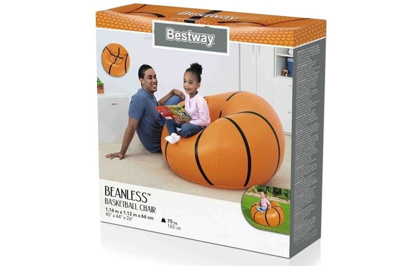 Fotel dmuchany z motywem piłki koszykowej świetnie się sprawdzi do pokoju dziecka jak i do ogrodu. Fotel jest miękki i wygodny dzięki wysokiej jakości winylu, z którego został wykonany. Dzięki swojej gładkiej nawierzchni jest łatwy do wyczyszczenia. Po wypuszczeniu powietrza i złożeniu zajmuje mało miejsca, co ułatwia przechowywanie.
