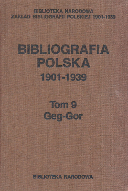 Kolejny tom Bibliografi polskiej 1901-1939, przygotowanej z niezwykłą starannością przez Instytut Bibliograficzny Biblioteki Narodowej. Bibliografia ta stanowi nieocenione źródło informacji o wszystkich działach piśmiennictwa rozwijającego się w Polsce w podanym okresie (także o publikacjach obcych uznanych za polonica zagraniczne). Tom obejmuje hasła na litery Geg-Gor i zawiera ponad 6 tysięcy pozycji.