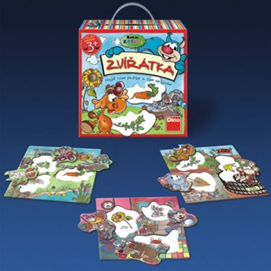 Zábavná jednoduchá hra v praktickém kufříku.Poznáš, která zvířátka jsou domácí, která patří na statek a která do ZOO? Víš, čím se zvířátka živí? To vše vám prozradí naše kouzelné karty. Děti při hře vkládají nepravidelné dílky se zvířátky do shodných otvorů s vyobrazenou potravou. Jednoduchá hra rozvíjí slovní zásobu, představivost a jemnou motoriku.