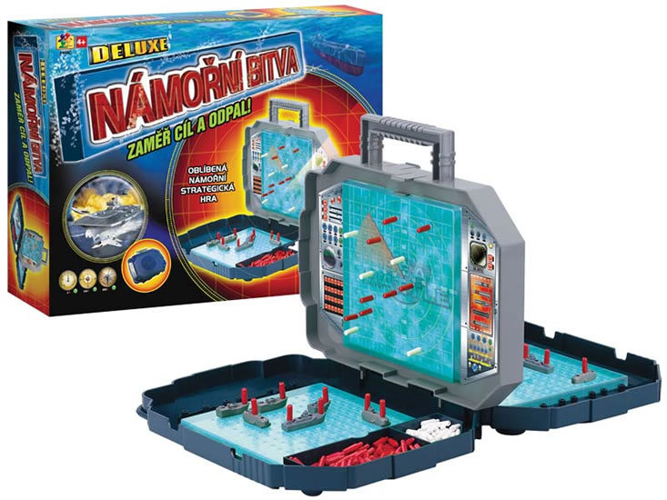 Zaměř cíl a odpal! Oblíbená námořní strategická hrav praktickém kufříku! Cílem hry je zasáhnout všechny protivníkovy lodě dřív, než on potopí ty vaše. Obsah: hrací plocha (rozkládací kufřík), 2 balení lodí, 2 balení červených střel, 4 balení bílých střel. przeczytaj całość