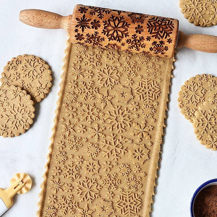 Embosovaný váleček na těsto s motivem sněhové vločky. przeczytaj całość