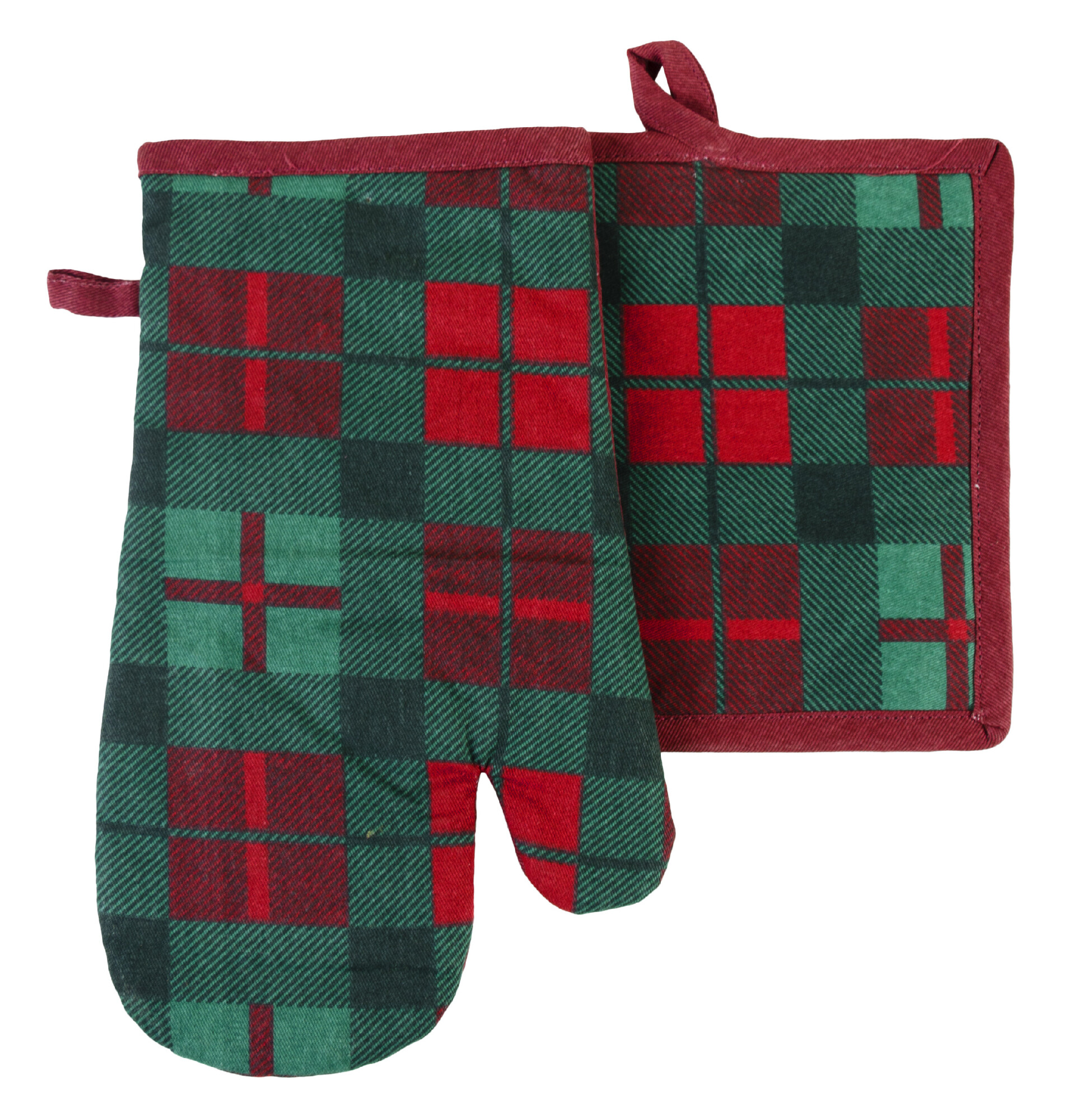 Vánoční kuchyňský set vánoční rukavice/chňapka FESTIVE FEAST - KOSTKY 18x30 cm/20X20 cm