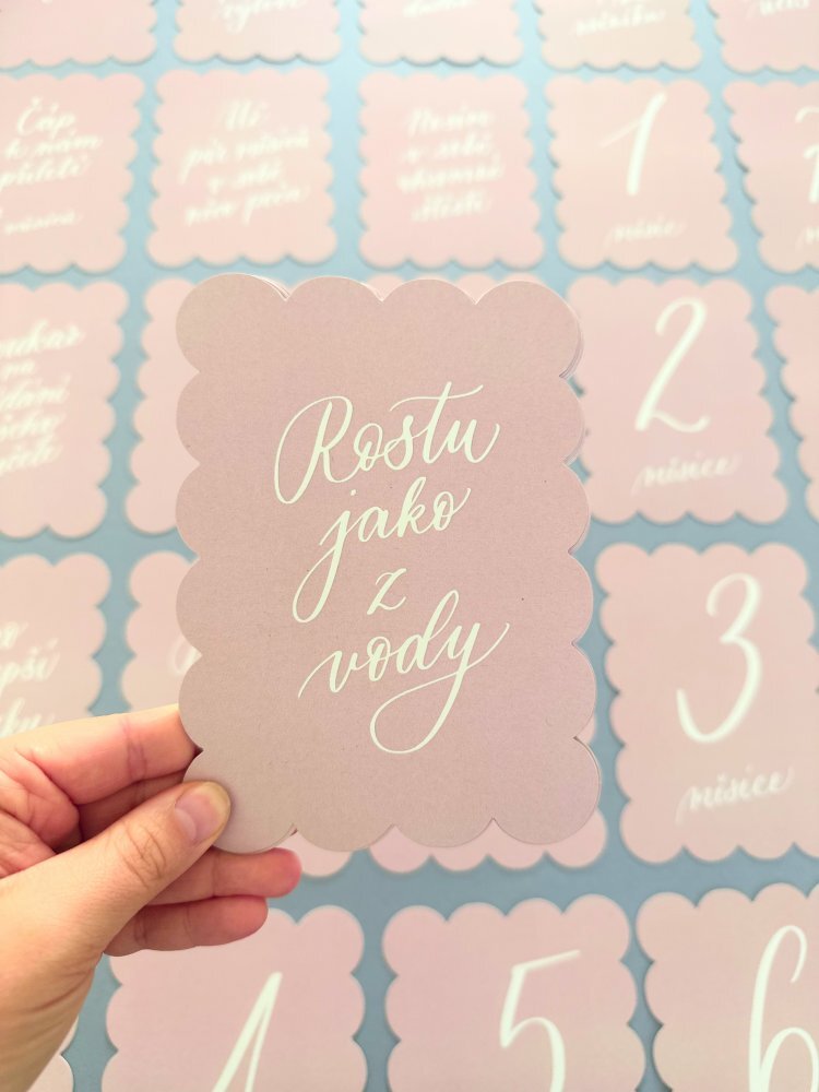 Obsahuje: 40 kartiček s textemRozměr: cca 14 x 11 cm1 ks dárková krabičkaZadní strana kartiček obsahuje text: Datum: ....., kam můžete vyplnit datum pořízení fotografie a založit si kartičku například do fotoalba. Text na kartičkách: Mé první seznámení s....Poprvé s dudlíkemRostu jako z vodyMé...