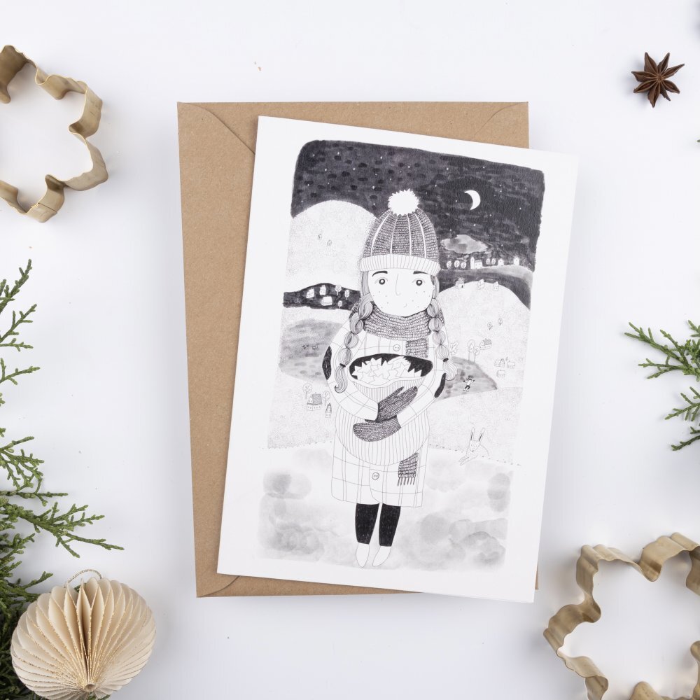 Obsahuje:1 ks přání Rozměr: 14,7 x 21 cm1 ks přírodní hnědá obálka 16,2 x 22,9 cmVnitřní text: May the spirit of Christmas bring you and your family hope, love and happiness. Merry Christmas!Originální autorský designPřání ilustrovala a krasopisně nadepsala česká výtvarnice Bára z Nikolajky....
