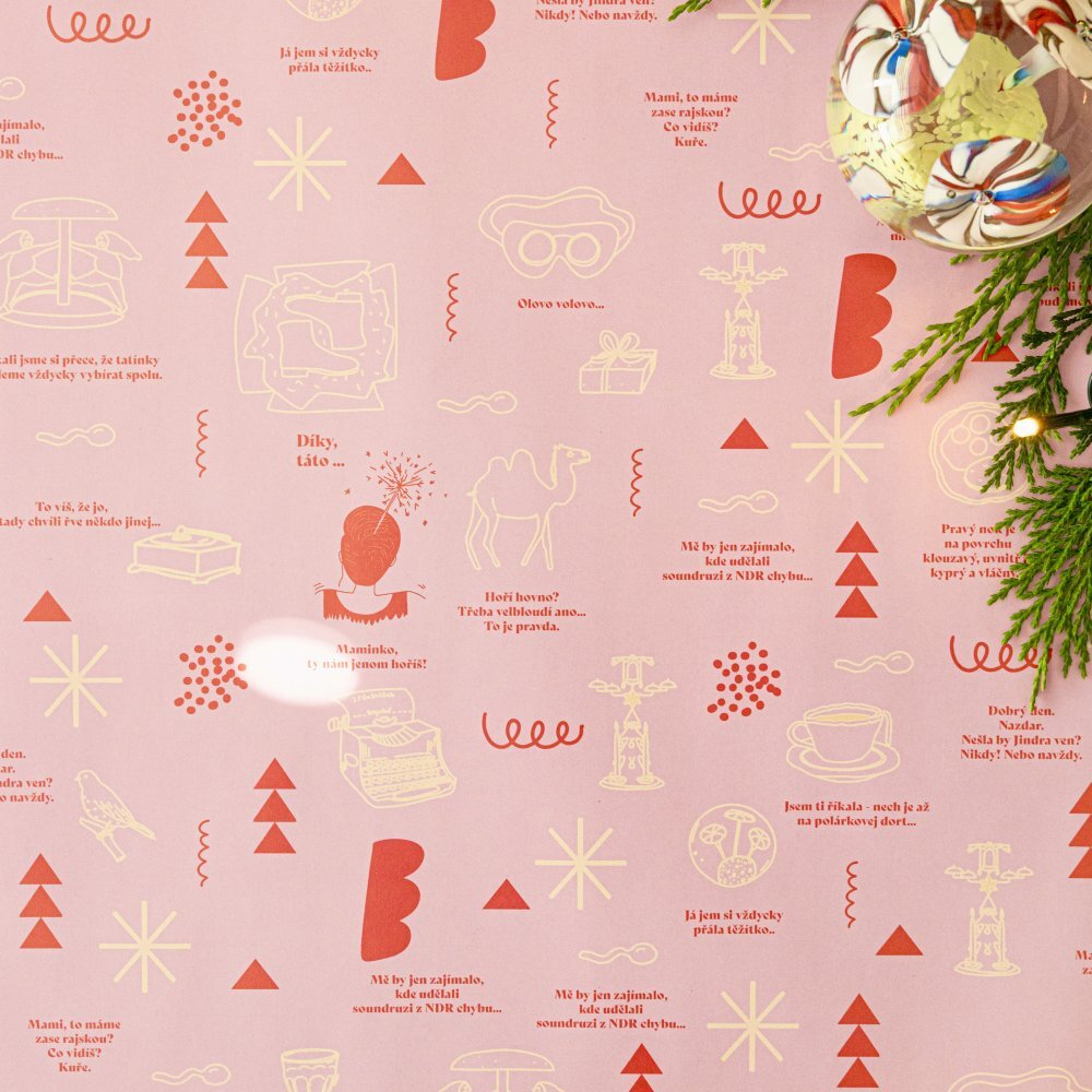 Vánoční balicí papír Pelíšky růžový - Limited edition 68 x 47 cm