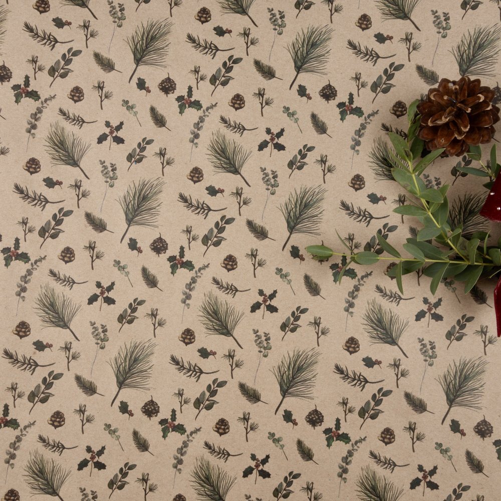 Be Nice V Jehličí vánoční balicí papír - hnědý - 5 ks 68 x 47 cm