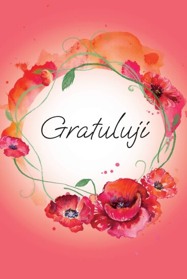 Originální blahopřání k svátku, narozeninám či k obyčejnému dni, plnému radosti s textem na titulce: Gratuluji - s motivem vlčích máků. Přání je vevnitř zdobeno motivem z titulní strany a textem: Přeji ti, aby Tvůj život kvetl jako nejkrásnější zahrada plná barev, vůní a šťastných okamžiků.... przeczytaj całość