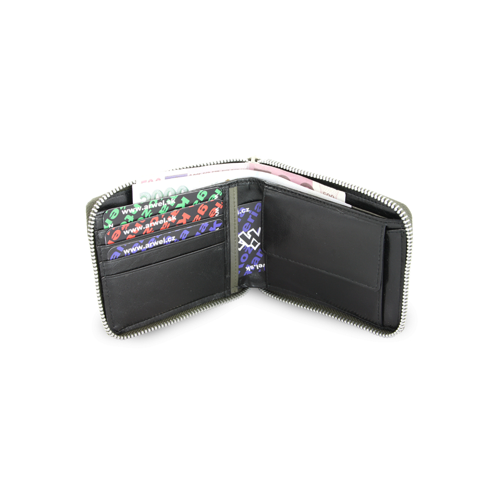 Kožená pánská peněženka od české značky Arwel.Vlastnosti:• 2 přihrádky na bankovky• 1 klopnová kapsa na mince• 7 kapes na kreditní karty, občanský nebo řidičský průkaz• kovový zipMateriál: pravá hovězí kůže (DD lazer) przeczytaj całość
