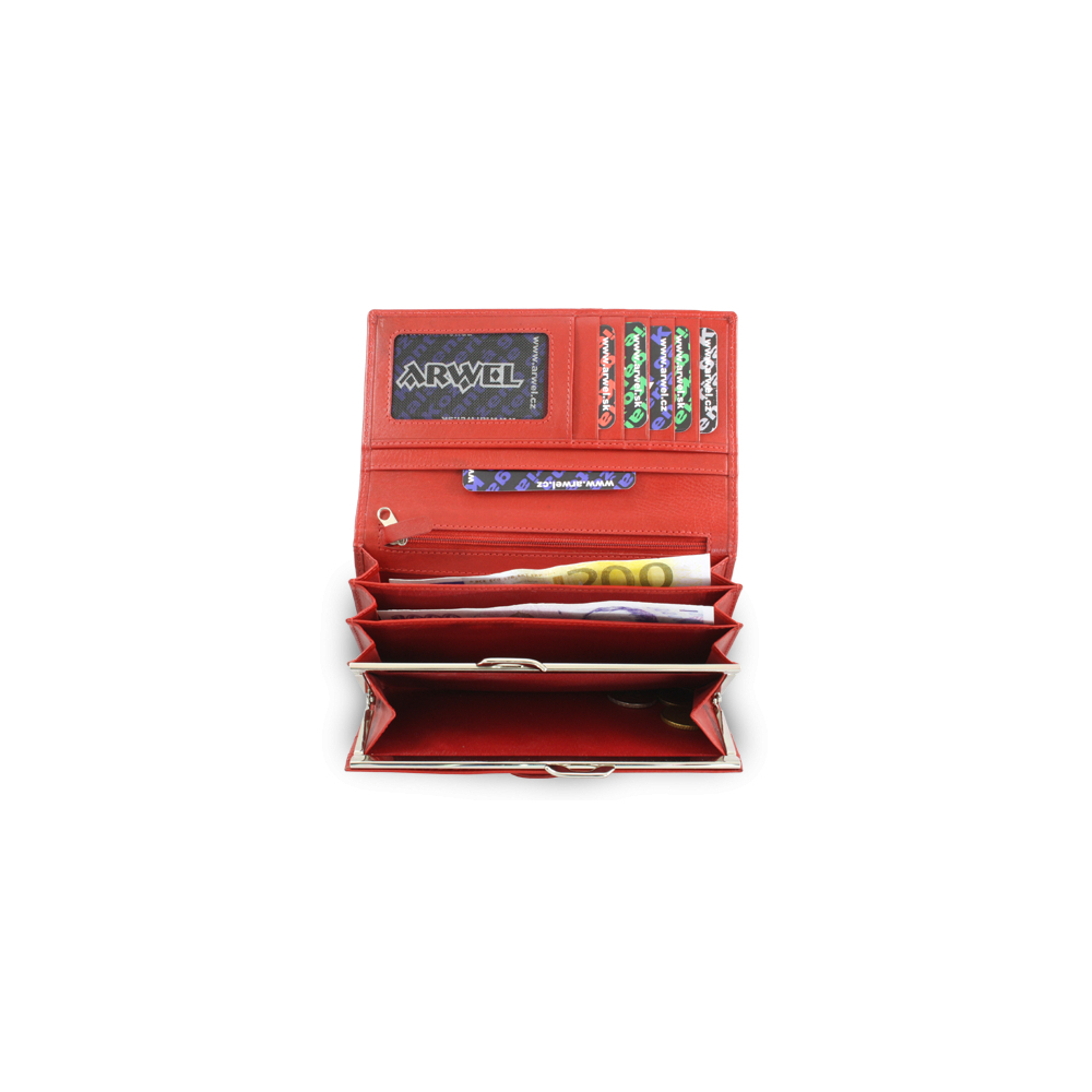 Kožená dámská peněženka od české značky Arwel, ve stylu psaníčkových peněženek.Vlastnosti:• s ozdobnou klopnou• 3 přihrádky na bankovky• rámová kapsa na mince• 10 kapes na kreditní karty, občanský průkaz nebo řidičský průkaz• vnitřní zipová kapsička• 2 velké vnitřní kapsy na dokumenty• venkovní zadní kapsa• dodávané ve stylové dárkové krabičceMateriál: pravá hovězí kůže (Buff DD)